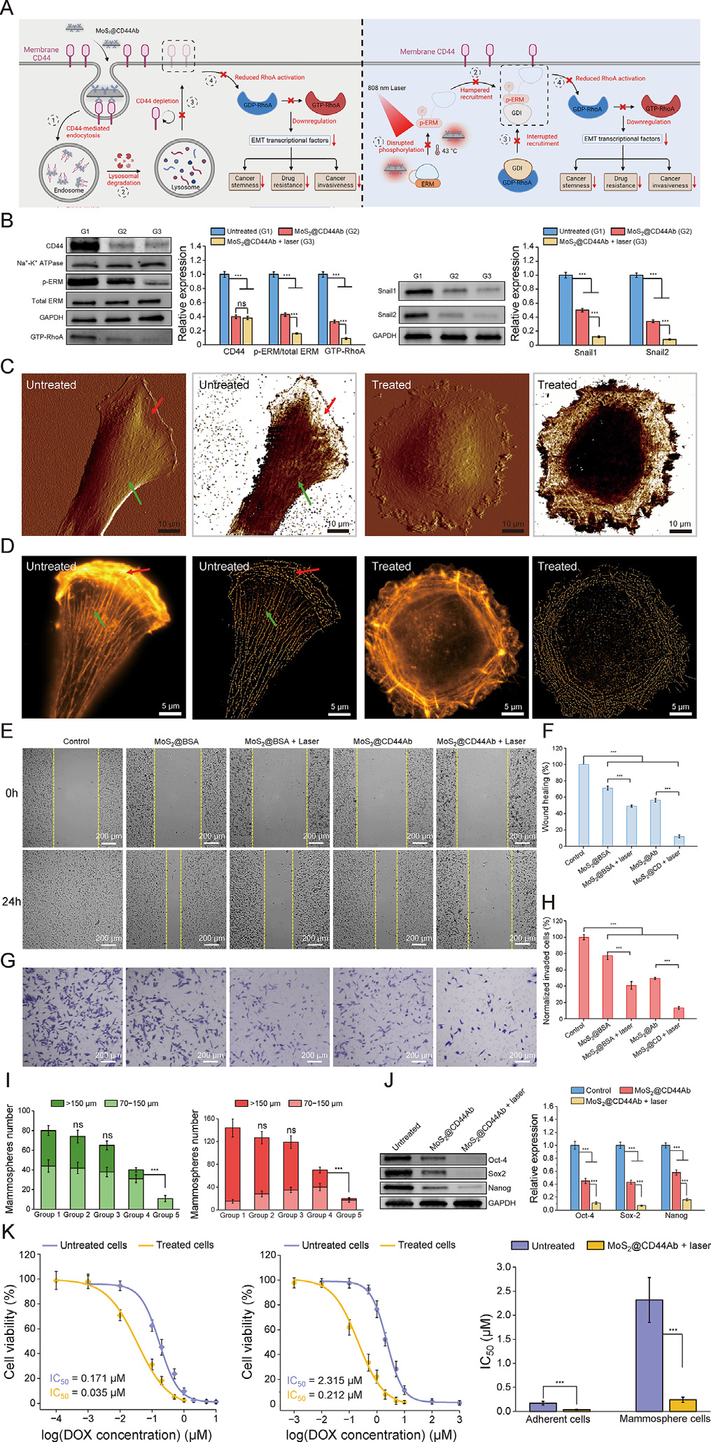 J. Liu, S. Smith, C. Wang, Photothermal attenuation of cancer cell stemness, chemoresistance, and migration using CD44-targeted MoS2 nanosheets, Nano Lett. 23 (2023) 1989-1999.