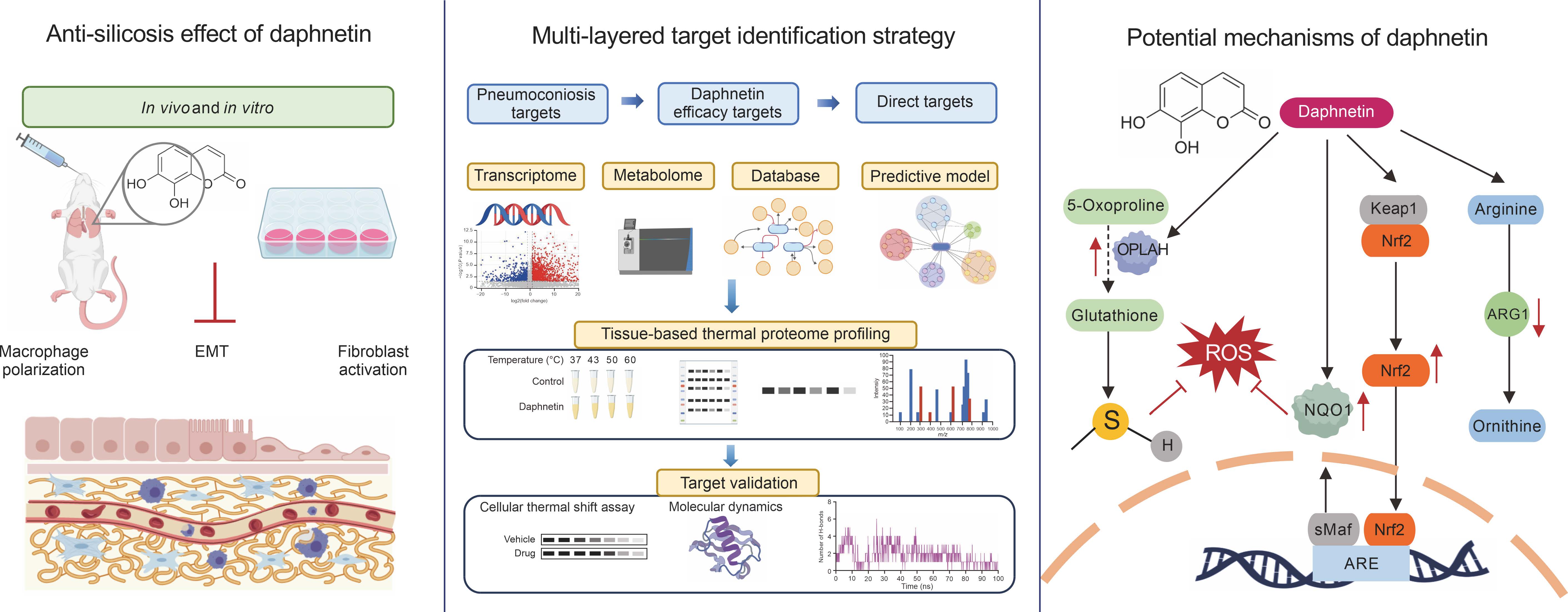 | Citation: | Ling Wang, Bo-Yan Ma, Sheng-Ping Jiang, Shu-Ting Wei, Xue-Mei Qin, Zhen-Yu Li. Multi-layered target identification strategy of natural products: Daphnetin targets NQO1 and OPLAH in silicosis alleviation[J]. Journal of Pharmaceutical Analysis. doi: 10.1016/j.jpha.2026.101629 |